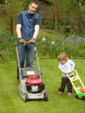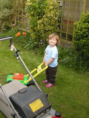 Unlike her Mum, Hannah has always shown a keen interest in gardening. So we got her her own lawn mower to help her Daddy.