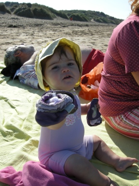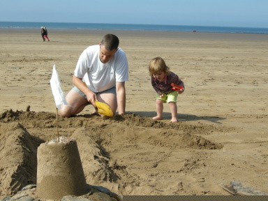 | And Hannah and Daddy made a huge sandcastle | |
